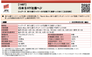 | iシェアーズ 米ドル建てハイイールド社債 ETF(1497) | 米国の高利回り社債 | 約 5.5% 〜 6.0% | 高利回り。景気悪化時の価格下落リスクは高め。 |